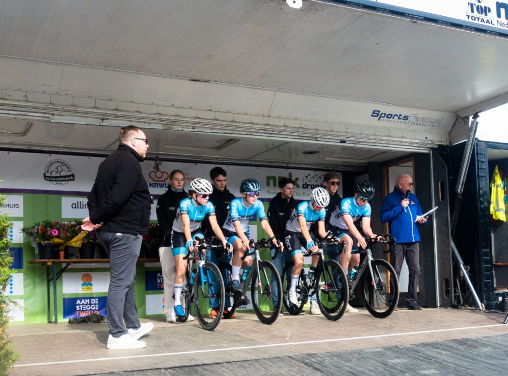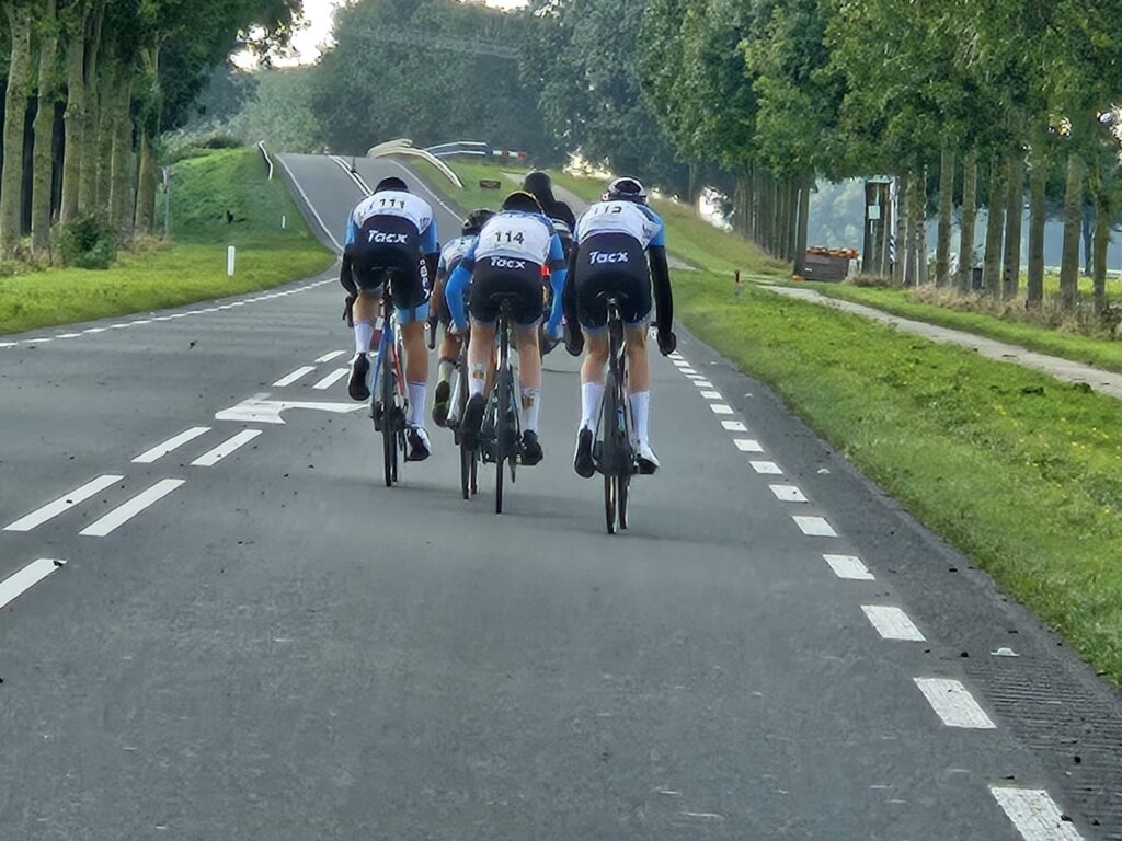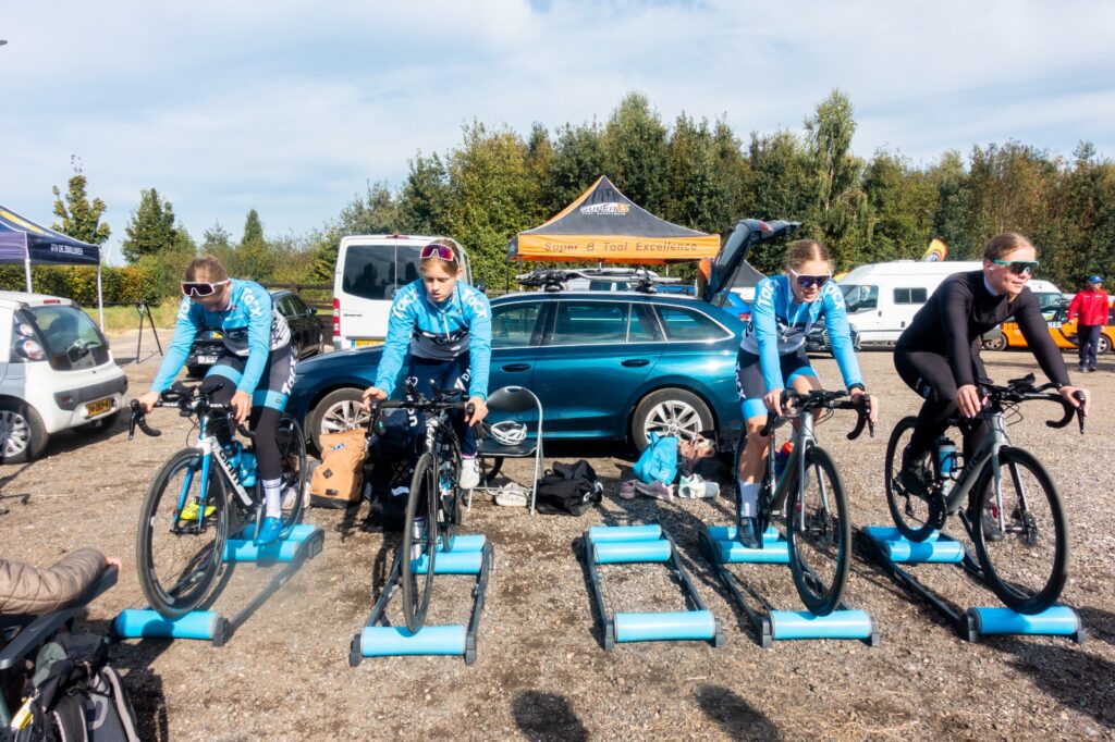 Daarna was het tijd voor het dames team . Onze vier nieuwelingen en juniorenmeisjes stonden aan de start in categorie C. Ze raceten niet alleen tegen leeftijdgenoten, maar ook tegen de grootste profs van Nederland, waaronder Demi Vollering. De verwachtingen om te kunnen winnen waren bij voorbaat niet realistisch. Echter, de verwachting dat ze zouden leren, ervaren en hun grenzen zouden verleggen, was dat wel. De dames gingen met de doelstelling om alles te geven en gezamenlijk hun beste prestatie neer te zetten.
